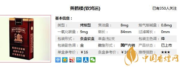 黃鶴樓香煙品牌作為一個歷史悠久的香煙品牌,它在國內(nèi)香煙市場上的地位非常關(guān)鍵,它是代表著湖北香煙,而黃鶴樓香煙產(chǎn)品也是國內(nèi)最多的,那么黃鶴樓軟鴻運(yùn)多少錢一盒,現(xiàn)在就由香煙網(wǎng)小編為大家介紹黃鶴樓軟鴻運(yùn)圖片價格。