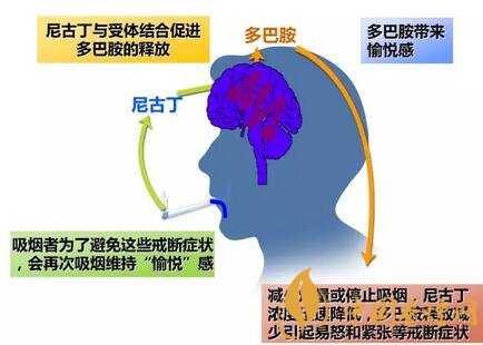 尼古丁在體內(nèi)代謝速度非???,不抽煙的時(shí)候,尼古丁濃度的迅速降低造成多巴胺釋放量減少,因而產(chǎn)生煩躁、焦慮等戒斷癥狀,身體就會(huì)渴求再次吸煙以獲得尼古丁來避免戒斷癥狀,這就是尼古丁成癮的本質(zhì)。