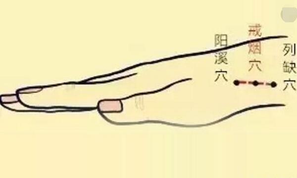 1、上午、中午、晚上各按摩戒煙穴一次(手指先按住陽溪穴,然后手指在皮膚上向手臂的方向滑動(dòng),約滑1~2厘米,指下就能感覺一個(gè)硬硬的骨性突起(橈骨莖突)這就是列缺穴了),每次10分鐘以上,至局部有酸、痛等輕微不適感為佳。在有吸煙欲望時(shí),亦應(yīng)加強(qiáng)按壓甜美穴處。