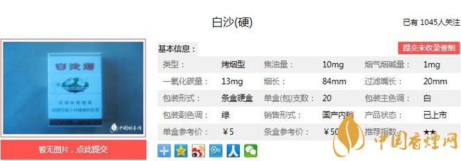 三、白沙(硬)香煙參數(shù)