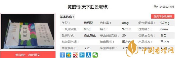 湖北中煙對這種極具中國特色爆珠味道的探索并沒有停止,在他們?nèi)卤楫a(chǎn)品——黃鶴樓(硬天下勝景)中,更是將極具中國風(fēng)味特色的鳳頭姜提取物,作為爆珠添加的天然原料,以此形成的姜味爆珠,成為全國獨創(chuàng)。經(jīng)香煙網(wǎng)小編市場調(diào)查黃鶴樓天下勝景爆珠售價為26元/包。