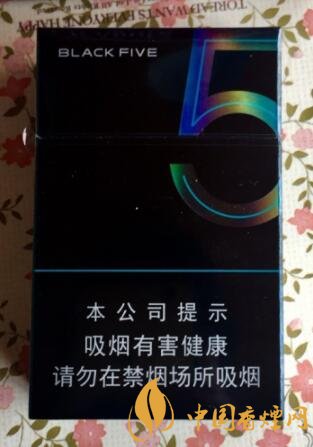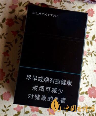 中南海典5外包裝整體采用的是黑色作為底色,和黑八很像,正面左上角寫著英文:BLACK FIVE,右上角是一個大的5,這個數字的中心是用淡淡的綠色,外圈燙銀,不同的角度會顯示不同的顏色,在正下方警示標語的上面有一條綠色的線,在這條線的左上方其實是有凸出的中南海和中南海拼音,背面和正面差不多,包裝煥然一新十分有立體感。