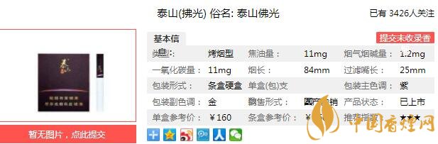 一、泰山拂光香煙價格