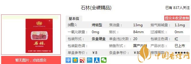 石林全硬精品是石林品牌系列的高品位卷煙。該產(chǎn)品繼承和發(fā)揚(yáng)了“石林”牌系列卷煙的有毒,自然優(yōu)雅,煙氣飽滿綿長(zhǎng),煙氣醇和的,口感和余味更加干凈舒適,香氣越來越細(xì)膩柔和。只可惜目前這款石林全硬精品已經(jīng)停止生產(chǎn),市面上已經(jīng)很少見了。