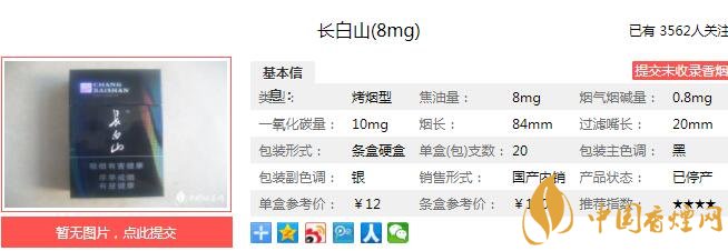 三、長(zhǎng)白山8mg香煙參數(shù)