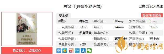 一、黃金葉許昌水韻蓮城香煙價(jià)格