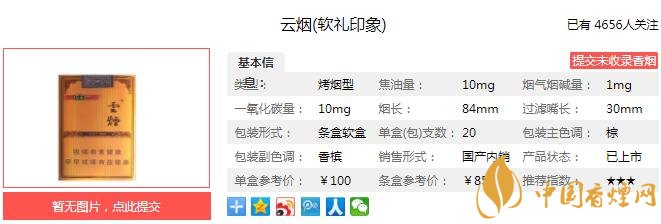 以上便是由香煙網(wǎng)小編為大家介紹的關于云煙軟禮印象怎么樣 云煙軟禮印象口感及參數(shù)介紹的相關信息,想要了解更多有關內(nèi)容請點擊:黃金葉天韻多少錢一包 黃金葉天韻口感及參數(shù)分析