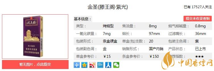 一、金圣滕王閣紫光香煙價格