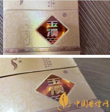新版與老版正面其他的差別還有兩處:一是,右上角上蓋右側(cè),紅塔煙草(集團)有限責任公司的文字標識,老版是在豎條的右側(cè),新版則分列豎條的左右兩側(cè);二是,煙盒居中右側(cè)的“玉溪”Logo,老款是深棕色單色底色,新版則是是淺棕色帶激光同心圓反射底紋。和版面的紋飾配合比較協(xié)調(diào),也更靈動一些。