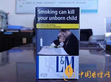 這是一款煙盒正反面均有警示圖片的版本,與單面警示圖片的法免藍(lán)駱駝還稍有區(qū)別。上文中的免稅GCC版本的精切紅L&M煙盒上的標(biāo)識(shí)位于煙盒翻蓋處不同,法免藍(lán)是位于煙盒下方。FINE CUT字樣依然印制于煙盒的左下角。