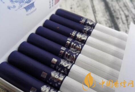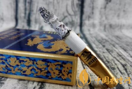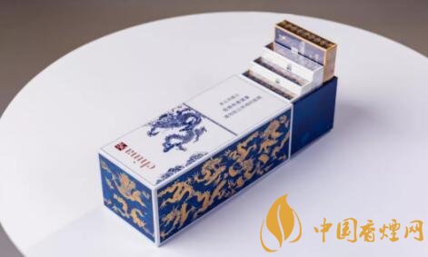 之所以此款china瓷為9+1系列,是指一條10盒香煙中,有一盒的包裝設計及口味,與余下九盒有所區(qū)別。圖片中深藍色澤包裝的,名為“龍王”。此種命名,乃是因十盒圖案皆為騰云祥龍而來。