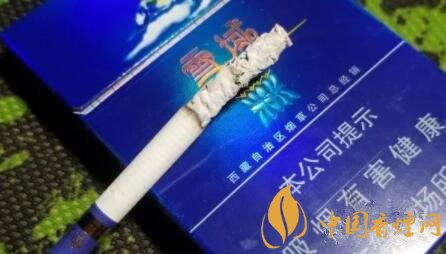 比較有趣的是濾嘴前端,款款的亮金色圓環(huán)內(nèi),有藍(lán)色花體的英文——Snow World,到底雪域是否如此直譯,沒(méi)研究過(guò),回頭還要請(qǐng)教精通英文的朋友。圓環(huán)上部是金色的雪域字樣。