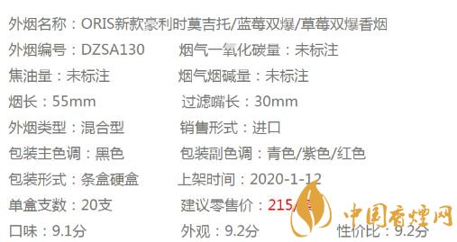 ORIS豪利時(shí)藍(lán)莓雙爆香煙參數(shù)