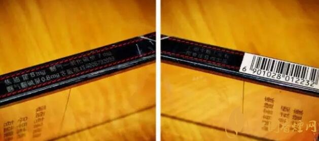 左側(cè):真龍香煙燃情時(shí)光顯示了焦油量8MG/煙堿0.8MG/煙氣7MG,細(xì)支里來說屬于中上水平了,并有客服熱線。右側(cè)則是出品方廣西中煙和條形碼。