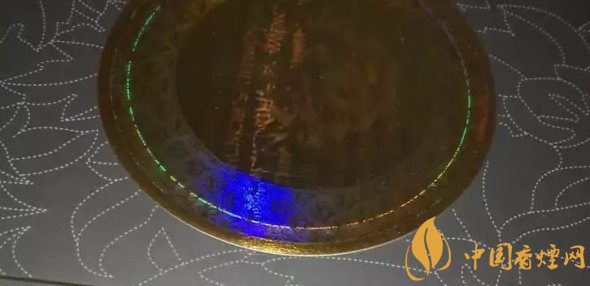反面也是警示語和鐳射防偽圖案,這個(gè)鐳射標(biāo)從不同的角度能夠變換不同的內(nèi)容,有的角度看到的是芙蓉花,有的看到的是芙蓉王三個(gè)漢字和幾排拼音字母,鐳射標(biāo)的外圈成很規(guī)整的渦輪狀,能變換圖形和色彩,這在很大程度上能起到防偽的作用,幫助廣大煙民辨認(rèn)真假芙蓉王硬黃(內(nèi)外包裝)。