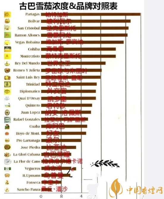 古巴雪茄濃度排名前十名 最全雪茄濃郁度表大全