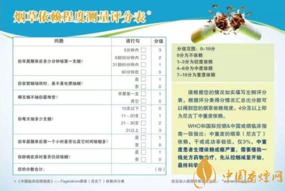 煙草成癮即尼古丁成癮,是國際衛(wèi)生組織公認的一項疾病,需要用科學的方法戒煙,才能達到最好的戒煙效果。在戒煙前,煙民朋友應充分了解自身情況。可根據(jù)上方的《煙草依賴程度評分表》,對自己的煙癮水平進行一個評估。0-3分為輕度煙草依賴,4-6分為中度煙草依賴,7分以上為重度依賴。超過4分的煙民朋友們,已經(jīng)為中重度煙草依賴患者。對于這類煙民朋友,“干戒”成功率極低,僅為3%,建議去正規(guī)醫(yī)院的戒煙門診,用藥物治療的方法來幫助擺脫煙草依賴,減少戒斷反應,降低痛苦,用科學的方法盡早戒煙。