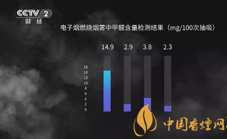 央視在權(quán)威機(jī)構(gòu)測(cè)試發(fā)現(xiàn),電子煙除了尼古丁,還含有甘油等成分,在燃燒或者霧化的時(shí)候,實(shí)際也會(huì)產(chǎn)生很多有害的物質(zhì),包括高濃度的甲醛。