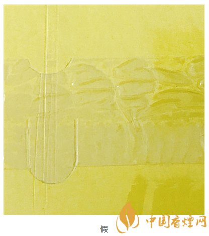 真煙條盒上的防偽標(biāo)志中的熒光顆粒大、清晰;假煙條盒上的防偽標(biāo)志顆粒小、雜亂。