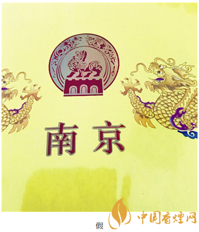 真煙條盒正面的“雙龍”“南京”等圖案立體感強(qiáng),印刷清晰且有力量感,摸上去凹凸感明顯;假煙的“雙龍”“南京”等圖案印刷不清晰,浮于表面,無凹凸感。