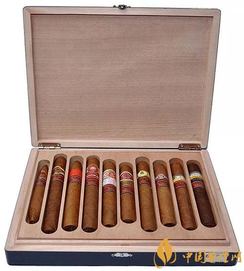 這是2009年發(fā)布的紀(jì)念古巴雪茄節(jié)10周年的版本。每盒雪茄有十支,里面有高希霸、蒙特、烏普曼、好友、帕塔加斯、特立尼達(dá)、庫阿巴、圣克里斯托等等,雪茄用了一個(gè)10周年標(biāo)簽,總共發(fā)行了兩萬盒。