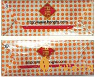 真煙所用的透明紙摩擦系數(shù)較低,透明度高,用手觸摸可感到其表面較光滑,紙質(zhì)較??;假煙所用的透明紙材質(zhì)粗劣,摩擦系數(shù)較高,用手觸摸可感到較滯手,紙質(zhì)較厚。