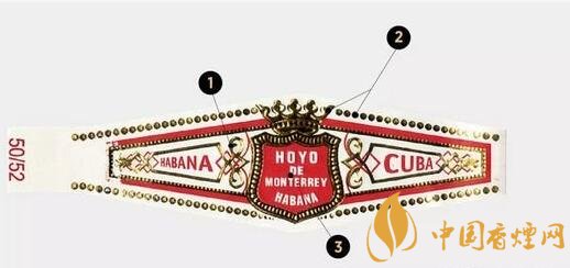 標準的好友茄標以白色為底色,茄標中間是搶眼的紅色盾牌,盾牌中間印有HOYO DE MONTERREY的品牌名,產(chǎn)地名HABANA和CUBA印在盾牌兩側(cè)。