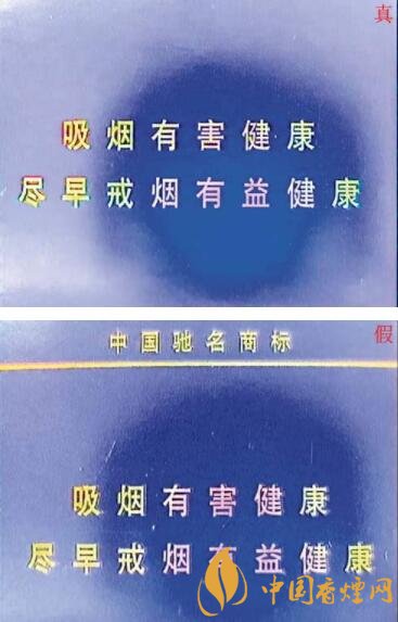真煙的警示語字體邊緣印刷清晰、平齊、無重影;假煙的警示語字體邊緣印刷有重影、帶毛邊。