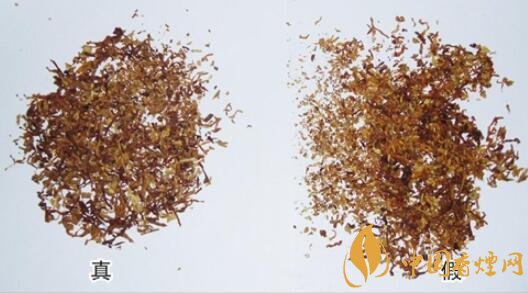 真煙煙絲成分為梗絲、膨脹葉絲、再造煙葉;假煙煙絲較碎、梗粒梗塊多、一般無膨脹葉絲。