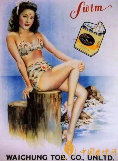游泳牌香煙廣告在民國時期也算是前衛(wèi)大膽,廣告是一位著泳裝的美女在海邊,濃裝艷抹,頭發(fā)卷曲,時髦靚麗。
