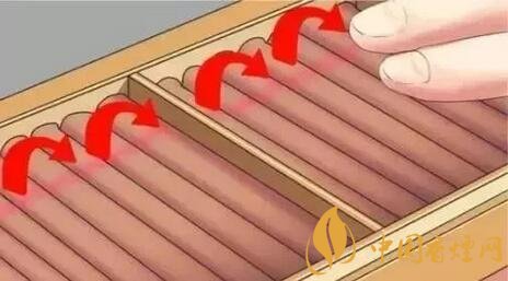 將雪茄放在濕度稍大如地下室之類的地方約一星期(如果雪茄特別干燥,可適當(dāng)延長時間)。而后將雪茄放置在濕度為70%的保溫盒內(nèi),每隔2-3天翻轉(zhuǎn)四分之一(90度),直到全部旋轉(zhuǎn)兩次。