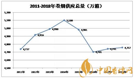 2018年,全國卷煙總銷量為4757萬箱,已經(jīng)超過了2011年卷煙供應(yīng)總量(4737萬箱)。但是,其中細(xì)支卷煙銷售203萬箱,按1/1.5粗細(xì)換算后,相當(dāng)于行業(yè)向市場(chǎng)供應(yīng)了4641萬箱常規(guī)卷煙。這就遠(yuǎn)遠(yuǎn)小于2011年的行業(yè)卷煙供應(yīng)總量了。