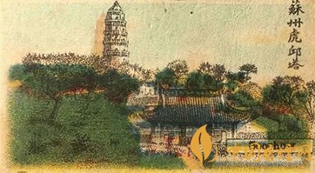 江蘇蘇州虎丘塔又稱云巖寺塔,始建于公元959年。塔系平面八角形,七級,是蘇州現(xiàn)存的最古老的一座佛塔,是古城蘇州的象征。畫面上虎丘塔高高聳立于景色幽雅的虎丘山巔上。