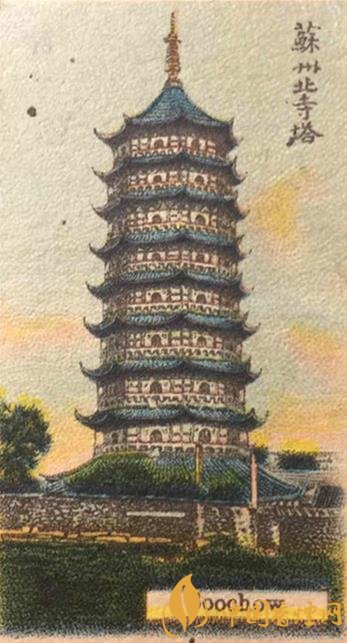 塔,是中國古代杰出的高層建筑,矗立在我國大江南北,體現(xiàn)了中國古代勞動人民的智慧。上世紀初,日本村井兄弟商會社曾出品過一套50枚的“中國古塔”卷煙畫片,通過石印印刷技術(shù),將一百多年前的古塔風貌濃縮于小小煙畫上,風格迥異,頗具特色。今天,我們選取其中幾枚加以展示,一起領(lǐng)略中國古塔的魅力。