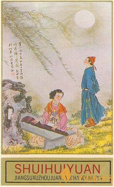 江蘇徐州卷煙廠出品于上世紀(jì)90年代的白底“水繪園”煙標(biāo),主版為水繪園遠(yuǎn)景圖;副標(biāo)展現(xiàn)的是:皓月當(dāng)空之夜,明末清初文學(xué)家冒襄(字辟疆)佇立于幽雅寧靜、垂柳依依的水繪園中,聚精會神地傾聽秦淮名妓董小宛彈奏古箏的場景;側(cè)標(biāo)印有相關(guān)文字介紹:“水繪園,中華園林之‘孤本’。明末四公子之一的冒辟疆,偕金陵名妓董小宛棲隱如皋水繪園。斯時,文人志士薈集其間,氣節(jié)風(fēng)流,名動天下。”此外,我國火柴生產(chǎn)企業(yè)也出品過寄予“有情人終成眷屬”祈盼的火花。