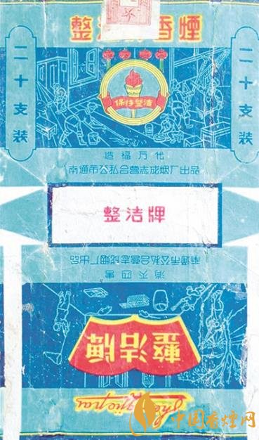 當(dāng)時(shí),南通市公私合營志成煙廠出品了一枚“整潔牌”煙標(biāo)(如上圖)。這枚采用白描藝術(shù)手法設(shè)計(jì)的煙標(biāo),主版是一幅“造福萬代”的主題圖案:畫面中心掛有四盞紅燈籠,下部有一把裝飾著紅綢帶、帶有“保持整潔”字樣的火炬。