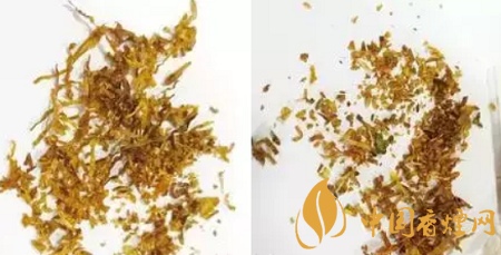 真煙的煙絲切絲均勻、碎末少,油潤(rùn)性好,看上去呈金黃色;假煙的煙絲雜質(zhì)多、油潤(rùn)性差,看上去顏色較淡。
