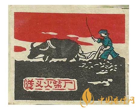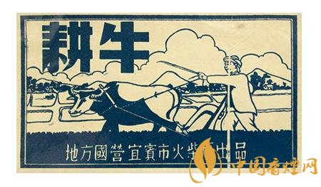 此后的50年代,地方國營宜賓市火柴廠出品的“耕牛”(圖2)火花,突出了一名少數民族農夫右手扶犁,左手拿著牛鞭驅趕牛兒加油翻耕農田的場景。