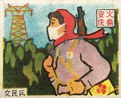 除了戴口罩的醫(yī)務(wù)人員形象外,火花上戴口罩的人物形象還有不少,如裹著冬裝的少年兒童、肩背藥箱的女民兵(圖3)、扛著掃帚的環(huán)衛(wèi)工人、在田間噴灑農(nóng)藥的科技人員、在食堂為餐具消毒的服務(wù)員等。南京火柴廠出品的“講衛(wèi)生”系列火花中,還替“惠山泥人”戴上了口罩(圖4)。