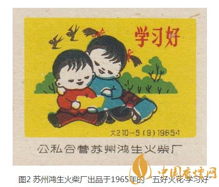 鳥欲高飛先振翅,人求上進先讀書。我國的火柴企業(yè)就出品過不少有讀書人身影的火花。1965年,蘇州鴻生火柴廠曾出品五枚/套的“五好”火花,其中“思想好”(圖1)一枚,描繪兩名兒童手捧一本《革命故事》書籍,津津有味閱讀的形象。