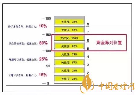 在同一組貨架上,因?yàn)轭櫩妥⒁暤姆绞讲煌圆煌惲形恢卯a(chǎn)生的銷量會(huì)有不同的變化,一般來(lái)說(shuō),與視線平齊的位置陳列的商品銷量最高,而顧客需要仰望和蹲下才能注視的商品銷量相對(duì)要低。