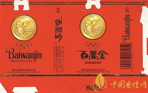 1996年,第26屆夏季奧運(yùn)會在美國亞特蘭大舉行。上世紀(jì)90年代,廣東韶關(guān)卷煙廠出品了“百萬金”煙標(biāo)(圖②)。該煙標(biāo)以紅色為底色,主、副版上均印有金燦燦的奧運(yùn)金牌以及奧運(yùn)五環(huán)圖案,副版上還印有“1996 ATLANTA USA”字樣。