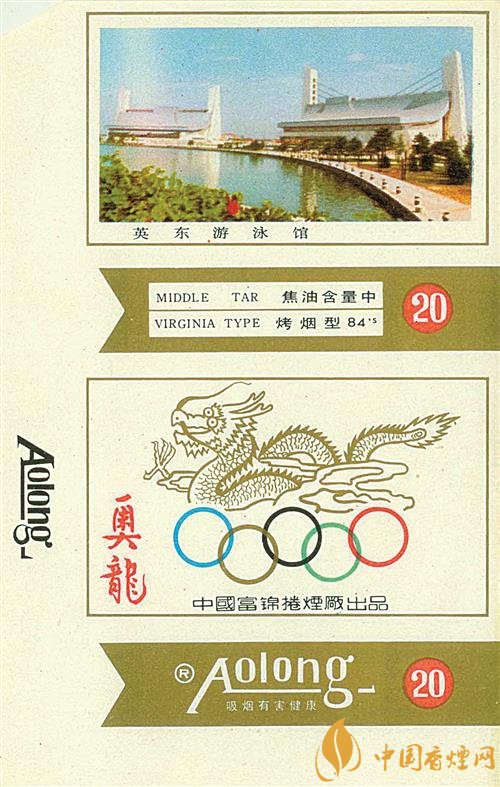 上世紀(jì)90年代,黑龍江富錦卷煙廠出品了“奧龍”煙標(biāo)(圖③),主版畫面是霍英東先生捐資興建的英東游泳館;副版圖案上方是騰云駕霧的神龍,下方是奧運(yùn)五環(huán)標(biāo)志。湖北武漢卷煙廠咸寧分廠于同時期出品的“奧博”煙標(biāo),主副版畫面均為著名的古希臘雕塑《擲鐵餅者》,在其下方是奧運(yùn)五環(huán)標(biāo)志、橄欖枝和地球圖案。同時期,湖北鄖陽卷煙廠出品的“搏冠”煙標(biāo),主版畫面是一名男足運(yùn)動員正在踢球;副版畫面是雙龍和足球,上方印有“沖出亞洲 搏擊奧運(yùn)”的字樣。