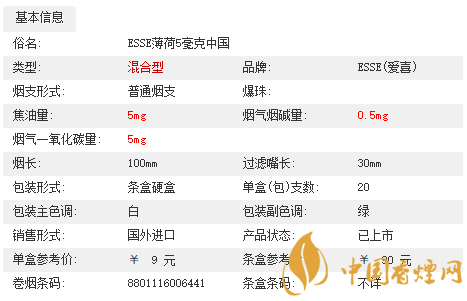 (注:08年四月份左右愛(ài)喜推出新款香煙,長(zhǎng)度和粗度均和普通香煙一樣,成分和口味均和和原來(lái)細(xì)長(zhǎng)型愛(ài)喜并無(wú)分別。新款愛(ài)喜的煙盒和老款也有所區(qū)別,和上面的圖有一點(diǎn)不一樣,在新款愛(ài)喜彈劾“ESSE”的商標(biāo)左面會(huì)多出“Menthol”的字樣。)