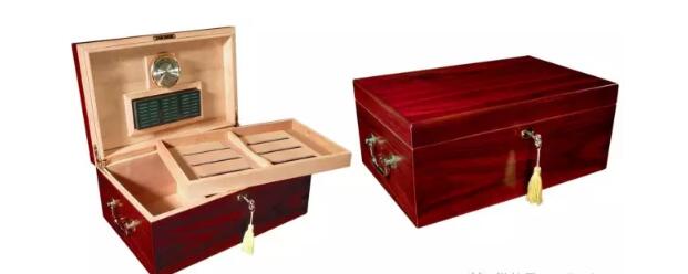 現(xiàn)在雪茄保濕盒一般采用后兩種方式,應(yīng)用最廣泛,也是最普通的是第二種,使用中等密度纖維板作為主體,膨脹度較小,用西班牙雪松木皮作為內(nèi)襯又能比較好的存儲雪茄。那些比較昂貴的雪茄保濕盒通常會采用第三種方式,內(nèi)襯是西班牙雪松木皮,主體結(jié)構(gòu)用的是硬木,給硬木皮上高光漆更容易些,同時也更有質(zhì)感。另外一個原因是很多硬木本身就是昂貴的。