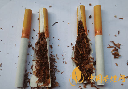 煙支及煙絲差異比對:真品煙支加長濾棒用來降焦減害,煙絲配比及切絲寬度均勻,假煙煙支濾棒只有19mm,無法達(dá)到減害降焦作用,煙絲含梗末較多,與真品煙絲外觀特征存在明顯差異。
