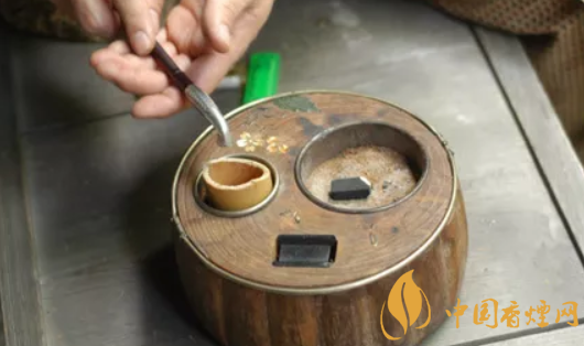 3.煙草盒——煙草盒是用來承載碎煙草的容器,既可以擺在托盤中,也可以放在紙包里,還可以將煙草直接放在煙草盆的抽屜里。煙草盒的材質可以很廣泛,竹木質、象牙、漆器等都可以制作煙草盒。有的人喜歡調味煙的話,會在煙草盒中加入一些香料,和碎煙草混在一起。