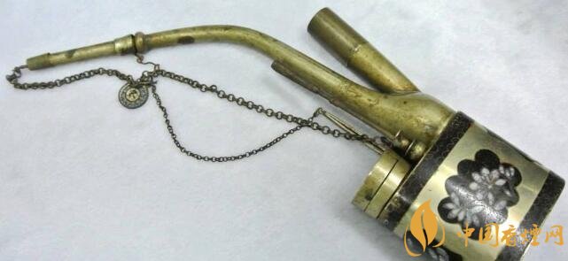 水煙袋的原理是青銅水煙壺,也叫水煙袋,用青銅板手工精細打成,壺里面裝大半壺的清水,煙桿里的煙霧經(jīng)過清水的過濾,再吸入口中。另外有一個“銀煙簽子”用來通去煙油子。